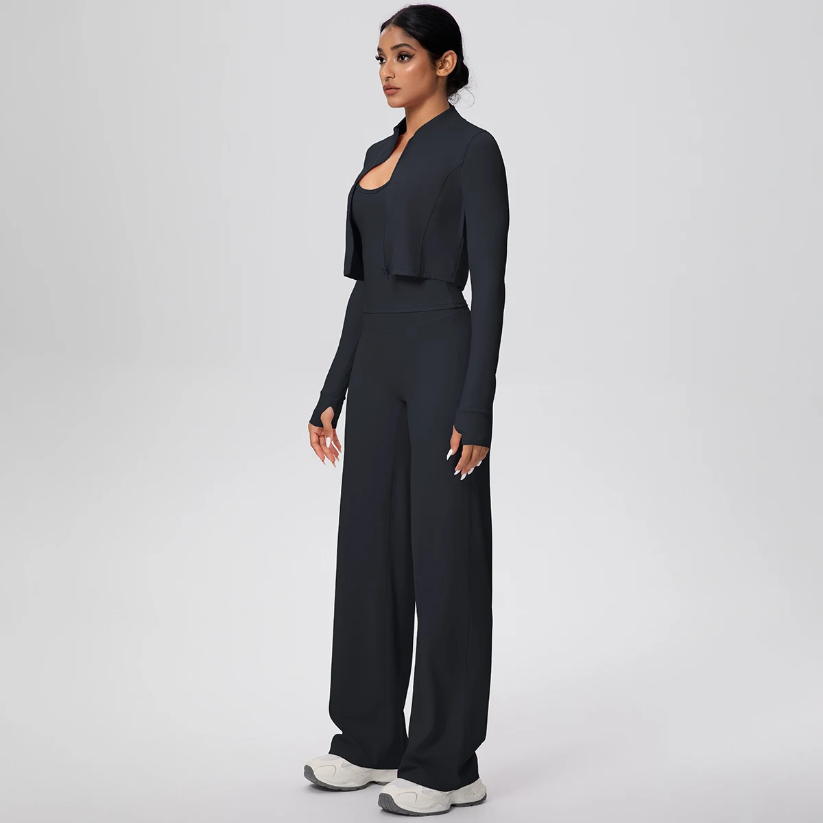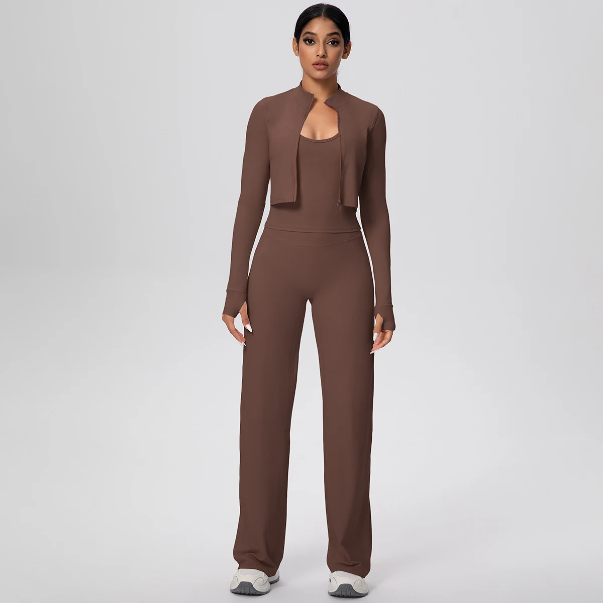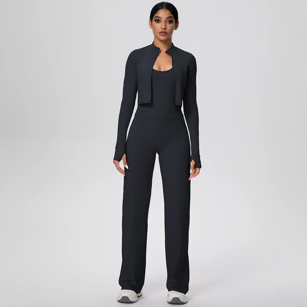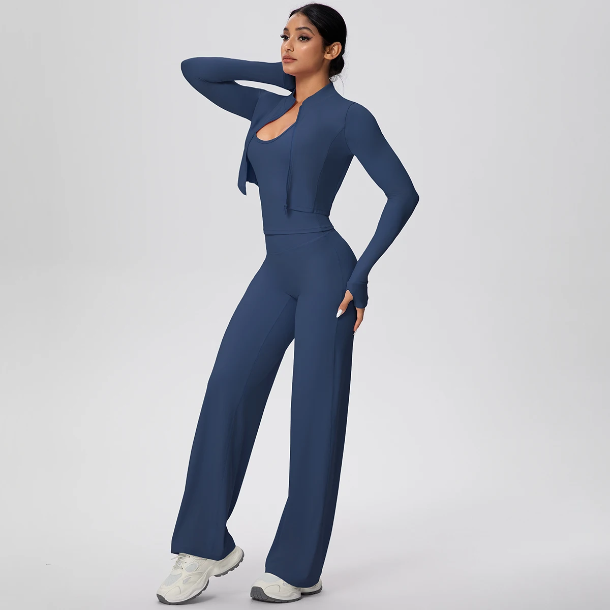 3pcs/set Yoga Gym Sports Set Yoga Three Piece Set Female Sportswear High Strength Training Scrunch Yoga Suit Solid Zipper Jacket